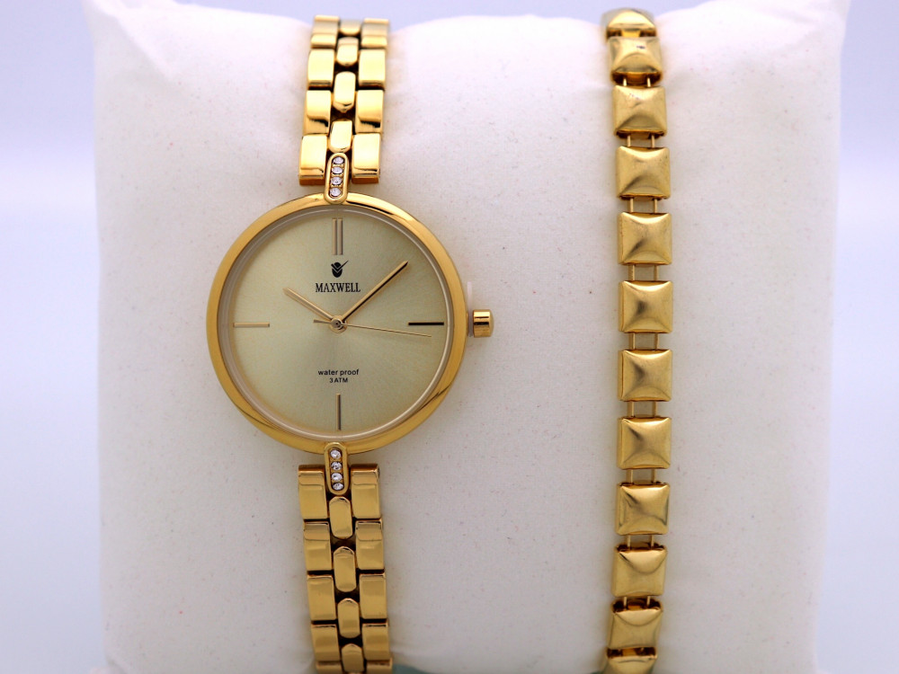 • ساعة نسائية في غاية الأناقة من ماركة MAXWELL الفخمة، مينا مختومة بالشعار