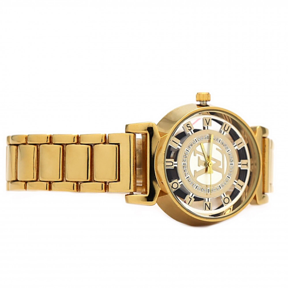 • ساعة نسائية سوف تكمل شياكتك بتصميمها الجذاب، إطار معدن بلون ذهبي ومينا بيضاء مزينة بحروف شعار المنتج