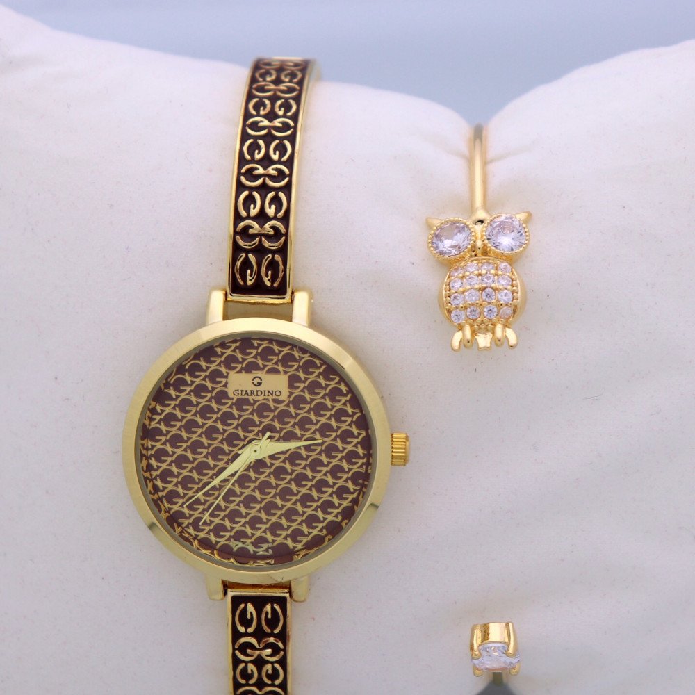 • ساعة نسائية موديل مبدع تلائم ذوقك أنيقة ومميزة في الوقت نفسة ، مزينة بحرف G على سوار الساعة والمينا إختصارا للشعار ، مينا مختومة بالشعار